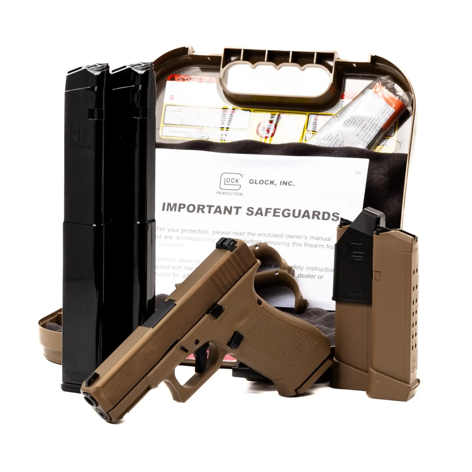 GLOCK's first ever "Crossover" pistol, the GLOCK 19X, combines the best features of two of its most popular and most trusted field-tested platforms. The full-size GLOCK 17 frame and the compact GLOCK 19 slide have joined forces to produce the ideal pistol for all conditions and all situations. The 19X comes in the coyote color with the first-ever factory colored slide, finished with an improved nPVD slide coating to prevent corrosion. Additional features include the GLOCK Marksman Barrel (GMB), no finger grooves, ambidextrous slide stop levers and lanyard loop.