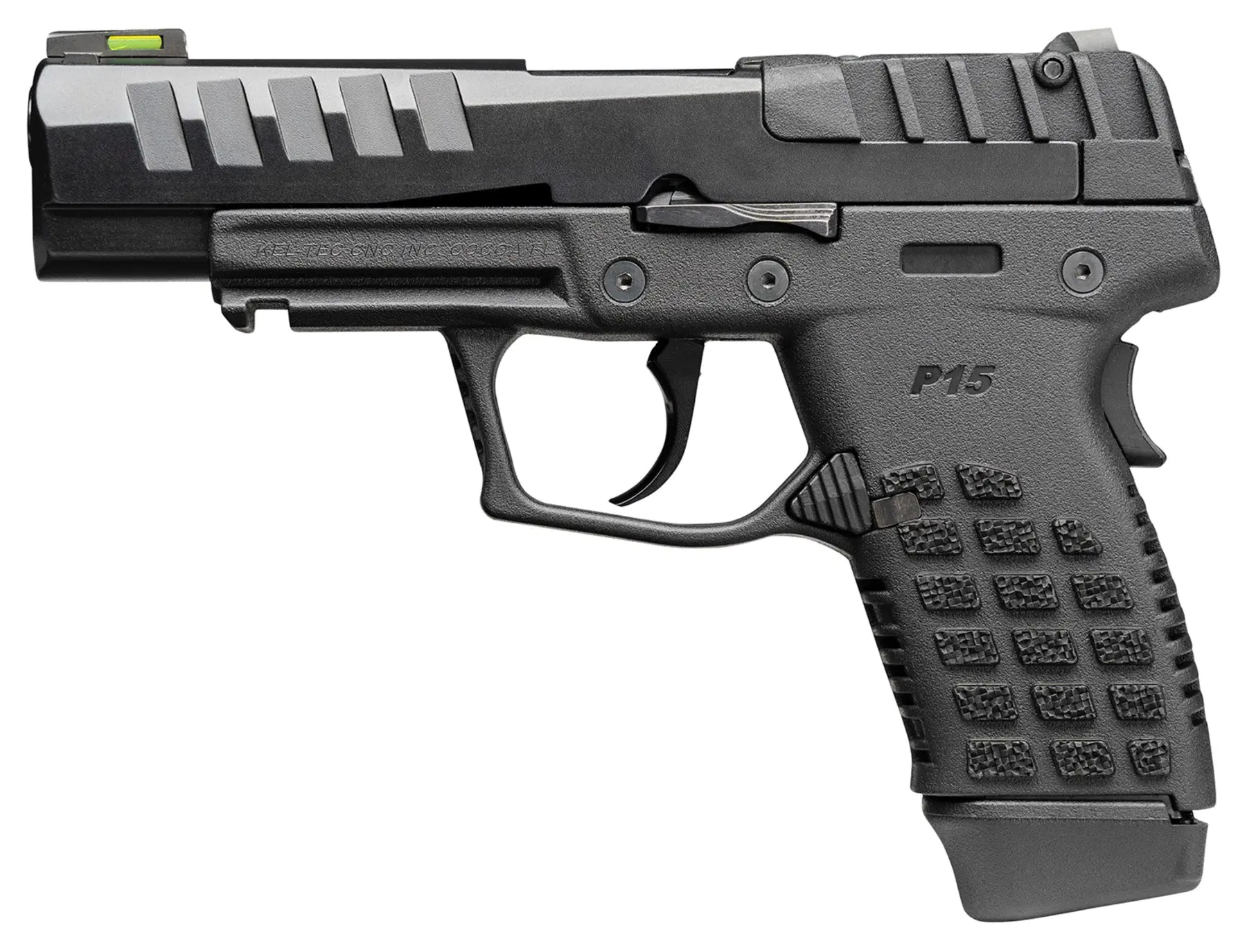 The KelTec P15 is a striker-fired, polymer pistol that weighs only 14oz and boasts a 15+1 capacity right out of the box. Its the lightest, thinnest double-stack 9mm handgun on the market. The P15 is an excellent choice for concealed carry. This pistol offers plenty of dependable firepower to secure your world. Features a tritium fiber optic front sight, adjustable, tritium, two-dot rear; striker fired.